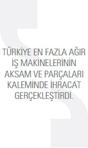 DÜNYA PAZARI KÜÇÜLÜRKEN Türkiye’nin Madencilik Makineleri İhracatı Artıyor BM İstatistik Bölümü verilerine göre Türkiye’nin madencilik makineleri ihracatı 2013 yılında, bir önceki yıla oranla yüzde 2,2 artarak 962,3 milyon dolar olarak kaydedildi. 2012 yılında bu rakam 941,2 milyon dolardı. Türkiye 2013 yılında en fazla serbest bölgelere madencilik makineleri ihracatı gerçekleştirdi. 2012 yılında serbest bölgelere 84,9 milyon dolarlık ihracat gerçekleştirilirken bu rakam, 2013 yılında yüzde 78,8 artarak 151,8 milyon dolar seviyesine yükseldi. Listenin ikinci sırasında ise Rusya bulunuyor. Türkiye’nin Rusya’ya yönelik madencilik makineleri ihracatı 2013 yılında 83,4 milyon dolar oldu. 2012 yılında bu rakam 66,4 milyon dolardı. Rusya’ya yönelik madencilik makineleri ihracatı yüzde 25,5 arttı. Listenin üçüncü sırasında bulunan Almanya’ya 2012 yılında 101 milyon dolar değerinde madencilik makineleri ihraç edilirken, bu rakam 2013 yılında 79,2 milyon dolar olarak kayda geçti. Almanya’ya yönelik madencilik makineleri ihracatı yüzde 21,6 azaldı. Türkiye 2013 yılında en fazla yüzde 78,8 ile serbest bölgelere madencilik makineleri ihracatını artırdı. Türkiye 2013 yılında en fazla ağır iş makinelerinin aksam-parçaları kaleminde ihracat gerçekleştirdi. 2012 yılında söz konusu mal grubunda 331,6 milyon dolarlık ihracat gerçekleştirilirken bu rakam, 2013 yılında yüzde 3,8 azalarak 319 milyon dolar seviyesinde kaydedildi. Listenin ikinci sırasında yer alan toprak, taş, cevher vb. ayıran, yıkayan vb. makinelerin parçaları ürün grubunda 2013 yılında gerçekleştirilen ihracatın değeri 124,5 milyon dolar olarak kaydedildi. 2012 yılında bu rakam 114,3 milyon dolardı. Toprak, taş, cevher vb. ayıran, yıkayan vb. makinelerin parçaları ürün grubundaki ihracat yüzde 9 arttı. Listenin üçüncü sırasındaki diğer taş,