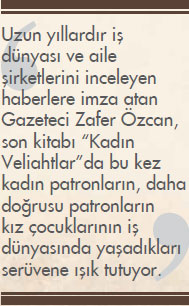 “Kadın Veliahtlar” isimli çalışma, iş dünyasındaki patron kızlarının serüvenini anlatıyor. Diğer bir ifadeyle, fabrikaya değen hanımelinin sıra dışı öykülerini bulacaksınız kitabın satır aralarında… Uzun yıllardır iş dünyası ve aile şirketlerini inceleyen haberlere imza atan Gazeteci Zafer Özcan, son kitabı “Kadın Veliahtlar”da bu kez kadın patronların, daha doğrusu patronların kız çocuklarının iş dünyasında yaşadıkları serüvene ışık tutuyor. Kadın Veliahtlar, patron kızları kadar, onların yaşadıklarından hareketle aslında Türkiye ekonomisinin yüzde 90’dan fazlasını oluşturan aile şirketlerinin de hikayesi… Aralarında Leyla Alaton, Sevda Kayhan Yılmaz, Zeynep Erkunt Armağan, Pınar Akın, Hande Bermek Başoğlu, Evrim Aras, Semra Akça Acar ve Zuhal Gözüküçük’ün de bulunduğu iş dünyasının önde gelen 25 kadın girişimcisiyle gerçekleştirilen söyleşilerden bazı bölümleri sizler için derledik.