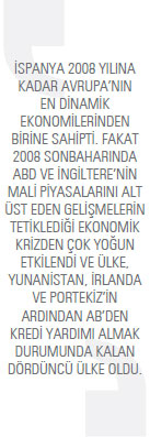 Bu parlak tabloya rağmen İspanya, 2008’de başlayan küresel ekonomik krizden en fazla etkilenen ülkelerden biri oldu. Önce Jose Luis Rodriguez Zapatero liderliğindeki dönemin sosyal demokrat hükümeti, sonra da Kasım 2011 seçimleriyle iktidara gelen Mariano Rajoy liderliğindeki muhafazakâr hükümet, ülkenin mali yapısını düzeltmek ve durgunluğa giren ekonomiyi kalkındırmak için radikal kararlar almaya başladı. 2014’e dek süren bu ekonomik durgunluk 2015’teki yüzde 3,2’lik büyüme ile aşılsa da ekonomik durgunluk döneminde yükselen ve halen yüzde 20 olarak açıklanan genç işsizlik oranı, İspanya ekonomisinin kırılgan noktalarından biri olmayı sürdürüyor.