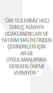 Günümüzde farklılık yaratmak, katma değeri yüksek ürünler üretmek istiyorsanız bunun yolu Ar-Ge’den geçiyor. Ancak teknolojisini veya tasarımını kendi geliştirdiğiniz ürünler sayesinde dünya pazarında etkili olabiliyor, ülkenizin ihracat potansiyeline daha fazla katkıda bulunabiliyorsunuz. Ar-Ge çalışmaları sonucu ortaya çıkan ve ürüne eklediğiniz yenilikler, ürünün fonksiyonelliğini ve performansını artırabiliyor veya enerji tüketimini azaltan bir etki gösterebiliyor. Bu durum da müşterinin veya tüketicinin ilgisini hızlı bir şekilde çekiyor ve bu ilginin üründen memnuniyete dönüşmesi durumunda, pazardaki rekabet ortamından sıyrılmak mümkün hale geliyor. Ar-Ge çalışmaları sonucu ortaya çıkmış ve performans hedeflerini tutturmuş bir ürünle pazarda çok hızlı bir şekilde en önlere geçebiliyorsunuz. Aynı zamanda Ar-Ge çalışmalarının en önemli katkılarından birisi de çalışmalar sonucu ortaya çıkan birçok verinin başka Ar-Ge çalışmalarını başlatabilme potansiyelinin olmasıdır. Ülkemizde Ar-Ge bilinci daha yeni yerleşen bir olgu. Ar-Ge çalışmalarının özelliği ilk başta kendi bütçenizden harcama yapmanız, genellikle orta ve uzun vadede geri dönüşünü alacak olmanızdır. Ülkemizdeki firmalar çok hızlı sonuç almaya odaklı ve çoğu zaman Ar-Ge çalışmalarının başlangıç maliyetine girmek istemediklerinden Ar-Ge yatırımlarına çekimser yaklaşıyor. Özellikle son 10 yılda artarak gelişen devlet Ar-Ge destekleri yatırımcıları daha cesaretlendirdi. Ülkemizde Ar-Ge konusunda bence en önemli eksiklik üniversite-sanayi işbirliğinin sağlanamamasıdır. Özel sektör çoğunlukla zorlandığı veya çözemediği so