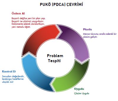 Değer Akış haritalama ile ilgili Yalın Enstitü’nün Türkçeleştirdiği Görmeyi Öğrenmek (Learning to See) kitabı bu tekniği anlamak için biçilmiş kaftan. Burada bir vaka çalışması üzerinden adım adım Değer Akış Haritasının nasıl çıkarıldığını görüyorsunuz. Değer Akış Haritalama, fabrikanın fotoğraflarını çekmekle kalmıyor; aynı zamanda mevcut durumu tespit ettikten sonra gelecek kurum ile ilgili bir tasarım yapmanızı sağlayarak yapacağınız iyileştirme faaliyetlerinin önünü açıyor. İyiye doğru değişim olarak Türkçeleştirebileceğimiz Kaizen kavramı bu iyileştirme faaliyetlerini yürütmeniz için geliştirilmiş Japonya kökenli bir Yalın Üretim tekniği. Kaizen, 7 temel kalite aracı ve 7 yeni kalite aracını kullanarak problem çözme sistematiğini Deming’in PUKÖ döngüsü çerçevesinde oturtan bir metodoloji. Kaizen sistematiği aynı zamanda Yalın’ın 5. sütunu olan ‘Mükemmellik’ ilkesinin harcını ve Yalın Düşünce Evi’nin çatısını oluşturan önemli bir gelişim motoru. Devamlı daha iyi olan için çalışmak ve hedeflenilen noktaya küçük adımlar ile ilerlemeyi esas edinen Yalın Düşünce, Mükemmellik sütununda bundan bahsediyor. Yapılan her Kaizen faaliyeti az evvel sözünü ettiğim Deming’in PUKÖ (Planla-Uygula- Kontrol Et-Önlem Al) döngüsü ile yürütülerek her bir döngüde mü - kemmellik noktasına ulaşmadaki bir küçük adıma tekabül etmekte.