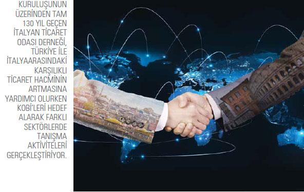İtalya’nın Türkiye’deki ticari faaliyetlerini koordine eden, bir anlamda İtalya ve Türkiye arasında 100 yılı aşkındır süregelen yatırım ve ticaretin nabzını tutan; iki ülke arasındaki karşılıklı ticaret hacminin artmasına yardımcı olan ve KOBİ’leri hedef alarak farklı sektörlerde karşılıklı tanıma ve tanışma aktiviteleri gerçekleştiren İtalyan Ticaret Odası Derneği’nin Türk ve İtalyan iş insanlarınca kuruluşunun üzerinden tam 130 yıl geçmiş. Bu çerçevede de geçtiğimiz yılın Kasım ayında İtalyan Ticaret Odası Derneği’nin kuruluşunun 130’uncu yılı kutlanırken, iki ülkenin ortak girişimcilik ruhunun ekonomiye güç kattığının altı çizilmiş ve Türkiye ile İtalya arasındaki ticari ilişkilerin 130 yıldır bir güven çemberi çerçevesinde sürdüğü, bundan sonra da her iki ülkenin karşılıklı yatırımlarıyla bu işbirliğinin devam edeceği vurgulanmıştı. İtalyan Ticaret Odası Derneği Türk girişimcilere nasıl destekler sunuyor? İki ülke iş insanlarını bir araya getirecek ne gibi etkinlikler düzenliyor?