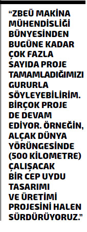 ZBEÜ Makina Mühendisliği bünyesinde bugüne kadar çok fazla sayıda proje tamamladığımızı gururla söyleyebilirim. Birçok proje de devam ediyor. Örneğin, alçak dünya yörüngesinde (500 kilometre) çalışacak bir cep uydu tasarımı ve üretimi projesini halen sürdürüyoruz. Yine, Elektriksel Kıvılcımla İşlenmiş Ti-6Al-4V Alaşımının Biyomimetik Kaplama Üzerindeki Etkilerinin İncelenmesi, Nanopartikül Karıştırılmış Akışkanlarla Isı Transferinin Deneysel Olarak İncelenmesi ve Radyal Türbin Mimarisinin Rüzgar Enerjisi Alanında Gerçellenmesi projelerine de halen devam ediyoruz.