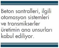 Hazır beton, ilk kez 1903 yılında Almanya’da ortaya çıktı. İnşaatlarda sağladığı kolaylık nedeniyle tüketimi hızla yaygınlaştı. Zaman içinde diğer ülkelerde de üretilen ve tüketilen bir ürün haline geldi. Özellikle 1950’lerden sonra hızlanan kentleşme ve altyapı inşaatları hazır beton ve beton ürünlerine daha fazla gereksinim duyulmasına neden oldu. Türkiye beton üretimine diğer ülkelere göre hayli gecikmeli başladı. 1970’li yılların sonuna doğru ülkemizde faaliyet gösteren inşaat firmaları öncelikle kendi ihtiyaçlarını karşılamak üzere hazır beton üretimine yöneldi. Türkiye’de beton tüketiminin yaygınlaşması ise 1980’li yılların ikinci yarısında gerçekleşti. Zaman içinde beton ihtiyacına bağlı olarak gerekli makine ve parçaların üretilmesine başlandı. Talepteki yükselme üretici sayısının ve ürün çeşitliliğinin artmasına neden oldu. Dünya beton üretiminde beton santralleri, ilgili otomasyon sistemleri ve transmikserler üretimin ana unsurları kabul ediliyor. Beton santralleri, beton bileşenlerinin stoklanıp kontrol altında karıştırılarak, üretiminin gerçekleştirildiği tesislerdir. Beton santralleri karışım şekillerine göre; yaş ve kuru karışım, depolama şekillerine göre bunkerli ve yıldız tip olmak üzere ikiye ayrılıyor. Beton, çimento, doğal veya yapay agrega, su ve diğer katkı maddelerinin muhtelif oranlarda karıştırılmasıyla elde edilen bir yapı malzemesidir. Betonun niteliğine göre çimento, agrega, su ve diğer katkı malzemelerinin istenen oranlarda; bilgisayar kontrolüyle beton santrali veya mikserde karıştırılmasıyla elde edilen hazır beton tüketiciye taze beton olarak teslim ediliyor. Su ölçme ve beton üretmek üzere kullanılan malzemelerin beton santralinde veya transmikserde karıştırılmasına göre kuru karışımlı beton ve yaş karışımlı beton olmak üzere iki tip hazır beton elde ediliyor. Beton tesisinde; beton santrali, otomasyon sistemi ve transmikserlerin dışında zorunlu olmasa da gerek betonun kalitesini, gerekse inşaat alanına uygulanması esnasında yapının daha kaliteli olmasını sağlayacak pompa, vibrasyon gibi bazı üretim araçları bulunuyor. Betonun transmikserden inşaat alanına (kalıba) kolay ve hızlı aktarılmasını sağlayan araca pompa, kalıba dökülen betonun donatıları iyice sarmasını sağlamak ve hava boşluklarını dışarıya çıkararak doluluğu artırmak için kullanılan araca vibrasyon deniyor. Türkiye’de hazır beton tesislerinin birçoğu da yeni teknoloji ile kurulmuş ve transmikserlerin çoğu pompalıdır. Kaliteli beton üretilmesinde teknoloji çok önemli bir yer tutuyor.