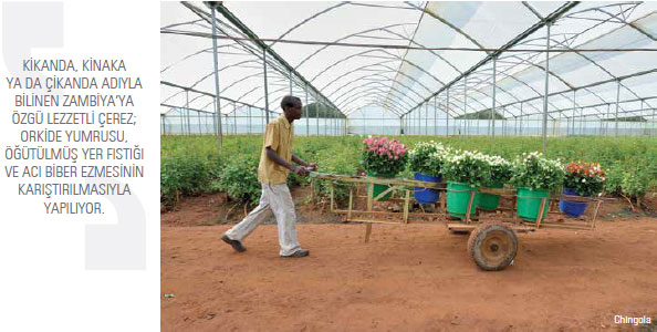 Her yıl bu çerez için Tanzanya, Angola, Kongo ve Malavi’den 4,4 milyon orkide yumrusu Zambiya’ya getiriliyor. Uzmanlar aşırı toplama nedeniyle orkidelerin geleceğinin bu yüzden tehlikeye girdiğini belirtiyor. Zambiya mutfağının en önemli ana besini ise mısır ve darıdır. Zambiyalılar nsima adını verdikleri darı ve mısırdan yapılmış sert lapayı sağ avuçlarının içine alıp küçük parçalar kopartarak ndiwo ve umunani dedikleri farklı lezzetteki güveçe bandırarak yiyor. Genelde bu güveçler et, tavuk ya da balıklı olurken tercihen fasulye, kurutulmuş balık, yer fıstığı, bamya, lahana ya da balkabağı yaprağı da kullanılır. Maheu adı verilen yoğurt kıvamında ve tatlı olan bir tür içecek ise ülkede oldukça popüler.